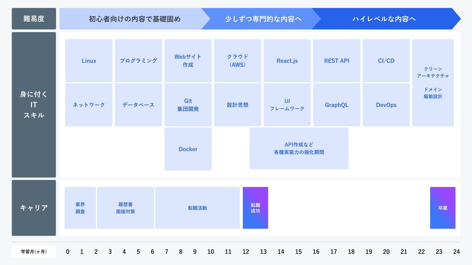 即戦力で活躍するために必要十分な内容を、2年間、500ステップにまとめました。